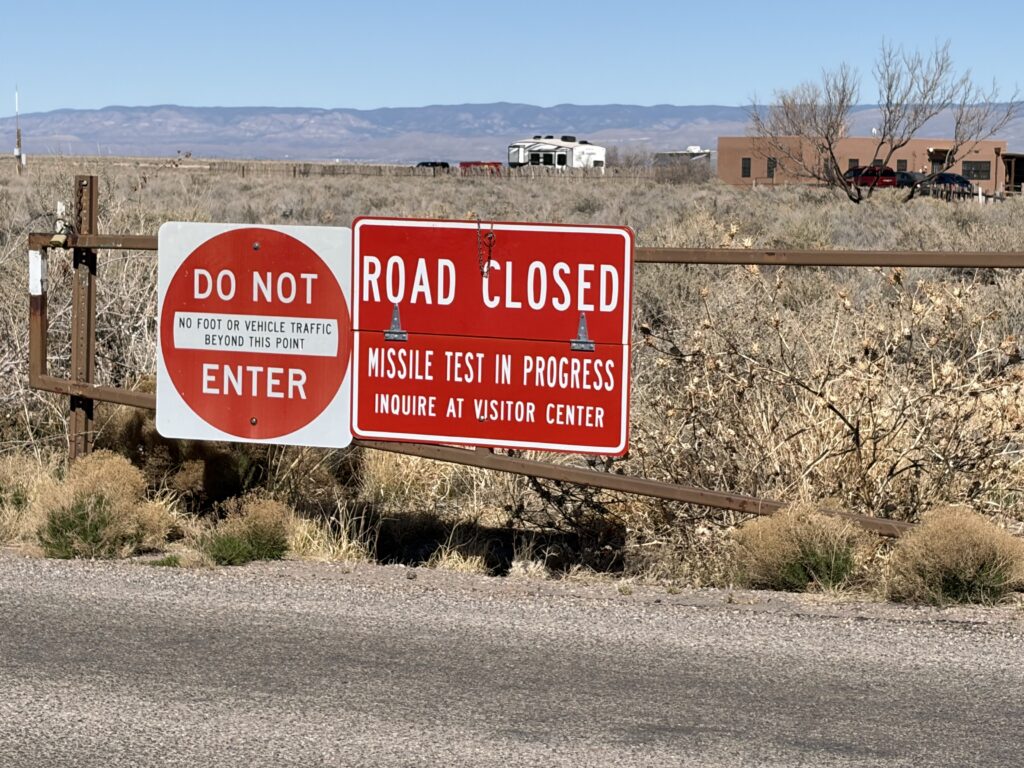 Here is a sign we don’t normally see, on the only road into White Sands. Get questions answered at the visitor center!?