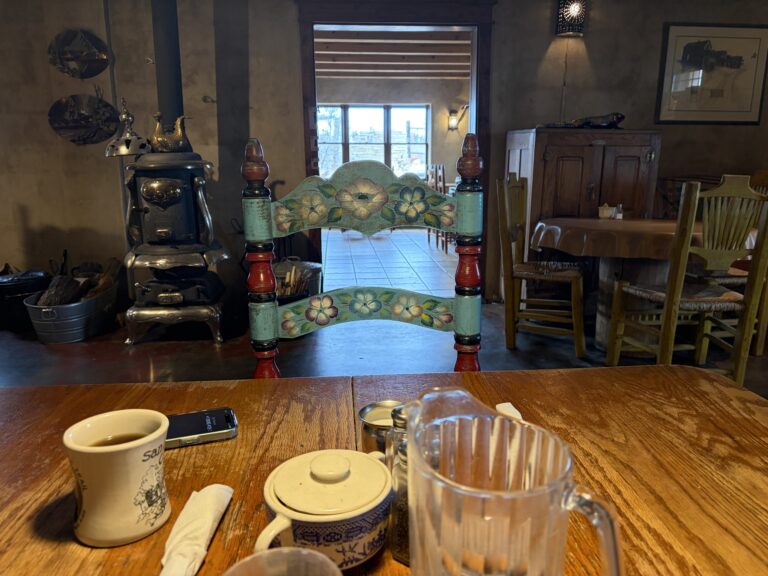Sometimes when traveling, you’re just lucky. Today, Dinah and I were headed up I-25, needed lunch and literally stumbled across the San Marcos Cafe (thanks, Duck Duck Go), about 15 miles from Santa Fe. Walking through the door we were immediately immersed in perfect New Mexico atmosphere and a live guitarist.