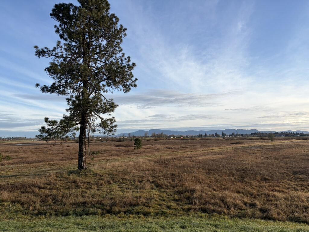We assumed Eugene used to be Old Growth country. Wrong. The Kalapuyan people used controlled burning to manage the area as a prairie with oak trees. Mainstay of their diet were roots such as Camus and Wapato (“Indian Potato) but there were literally dozens of plants to eat from the prairie. Eugene and Oregon are now preserving areas like this to rebuild a part of that ecosystem.