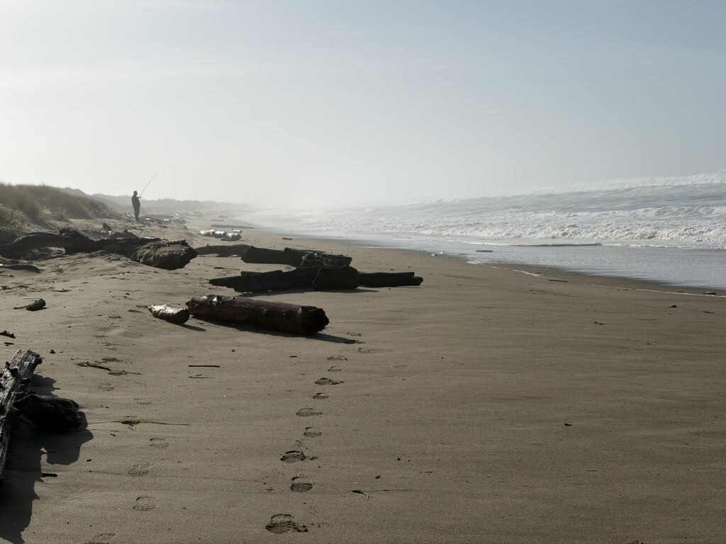 Met this man fishing for Redtail Surfperch. He has never caught one although he heard that it’s possible. Nice guy, gave us a shouted warning when a semi-rogue wave tried to swallow Dinah and I up.